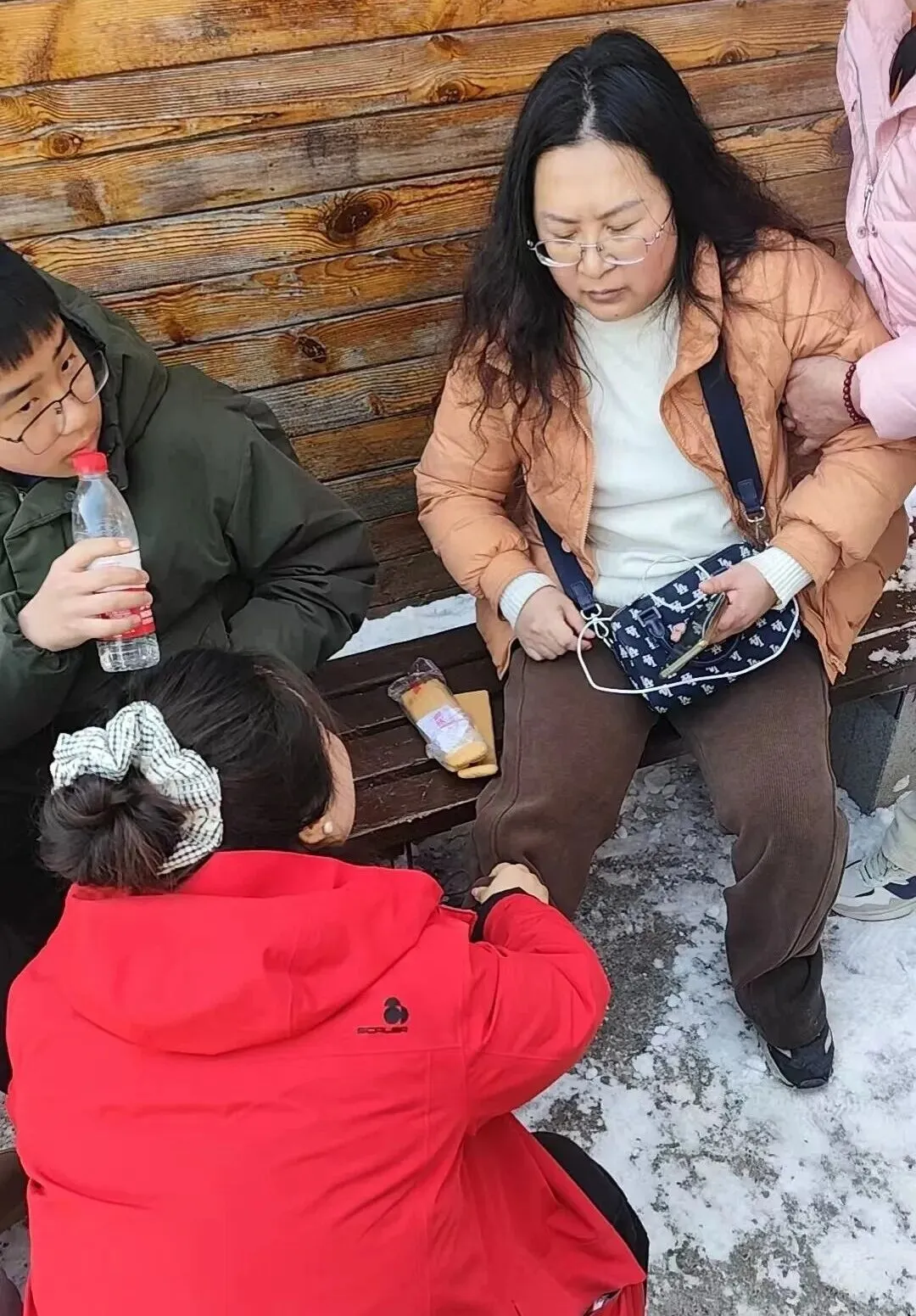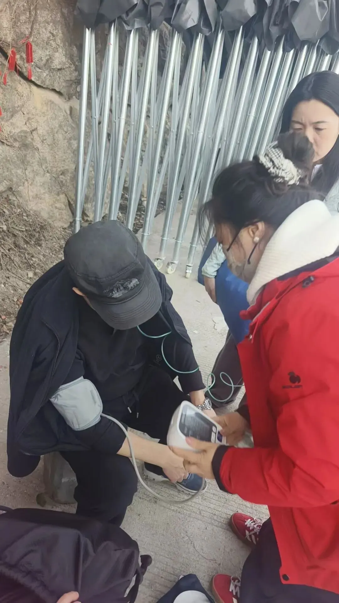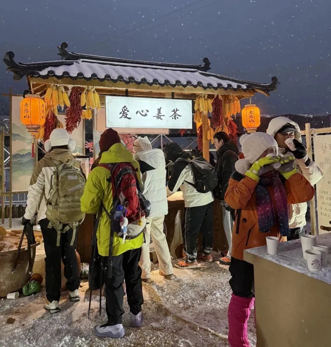 春节期间,山上气温较低,景区在中天门设置了免费姜茶供应站,为游客驱寒保暖。除了姜茶,景区还为游客提供免费测血压、血糖、手机充电等服务,细微之处见真情,让游客感受到家一般的温暖。