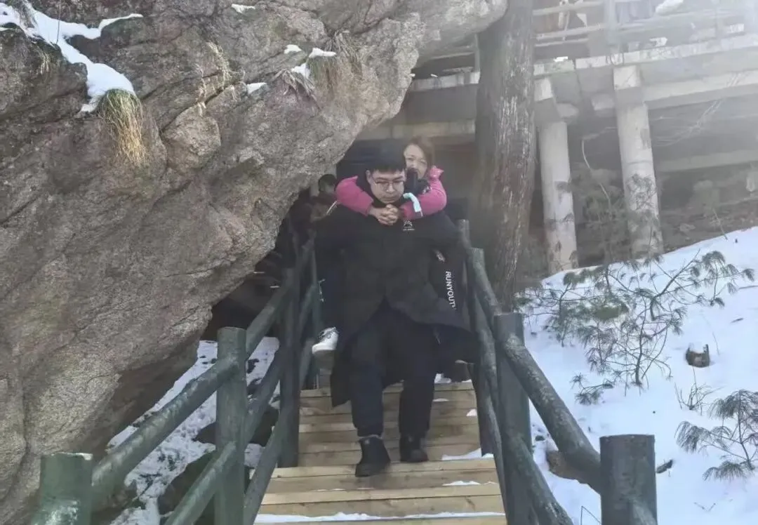 这些温情服务的背后,是400多名景区职工放弃与家人团聚的坚守。从清晨第一缕阳光到夜幕降临,他们始终在各自岗位上默默奉献。他们中,有连续八年春节在岗的索道操作员,有每天徒步巡查十几公里的安全员,有天不亮就开始打扫的保洁人员...