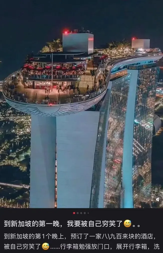 网友说,他第一晚到新加坡,订了一家800-900人民币的酒店,结果感觉自己太抠门了,觉得有点笑话自己。