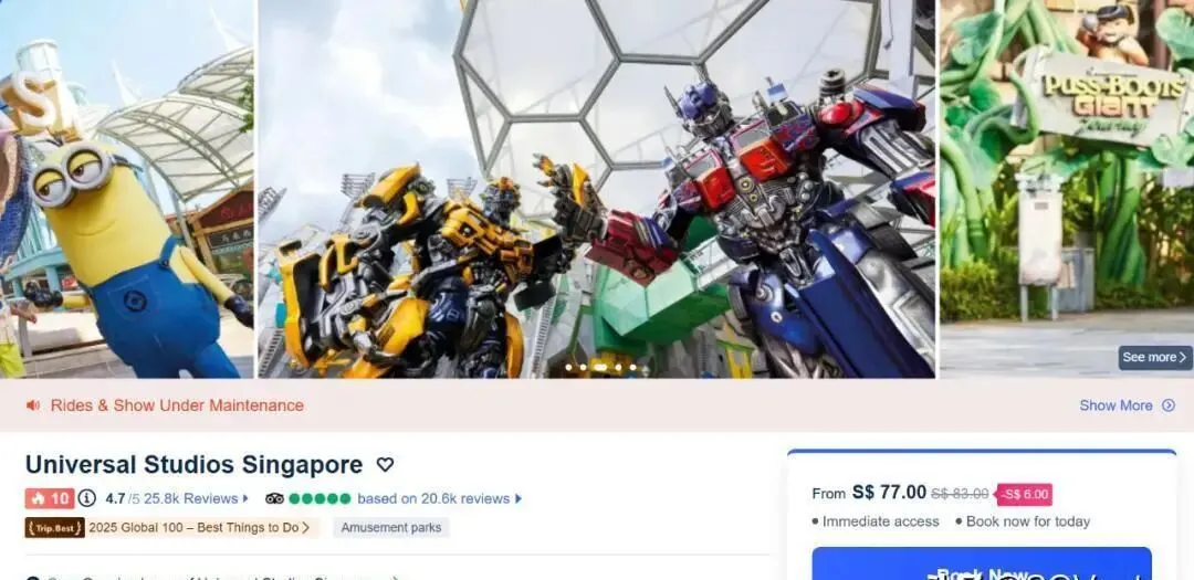 环球影城一个人77新币(大概430人民币),差不多一天玩下来也够了。