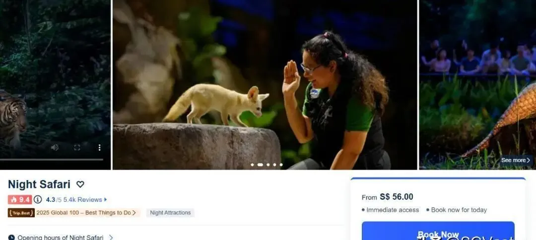 夜间动物园门票¥312