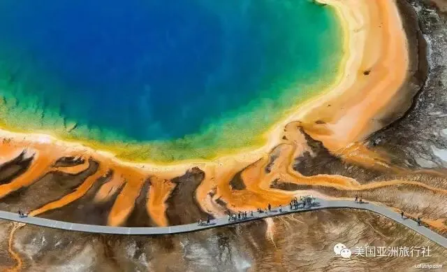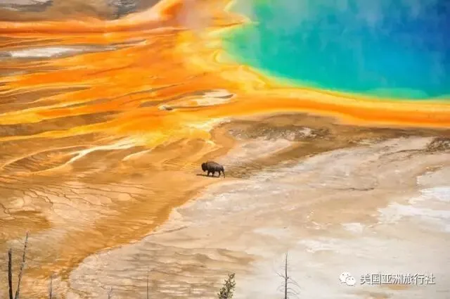 大棱镜温泉也被称为大彩虹温泉,是目前美国境内最大,世界第三大的温泉。而大棱镜温泉的没在于湖面的颜色会跟随季节而变化。在夏季,湖面会呈现橙色,红色或者黄色,这也是由于富含矿物质的水体中生活着藻类和含色素的细菌等微生物。所以也各位旅游大人们称为“上帝打翻了调色盘,把最美的色彩泼洒到了这里”。