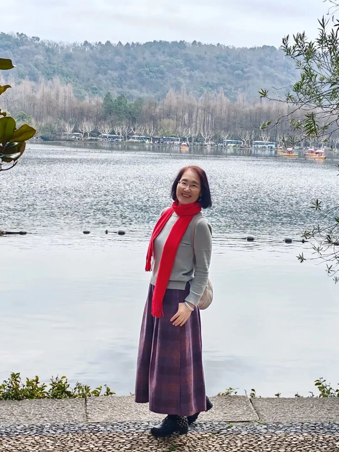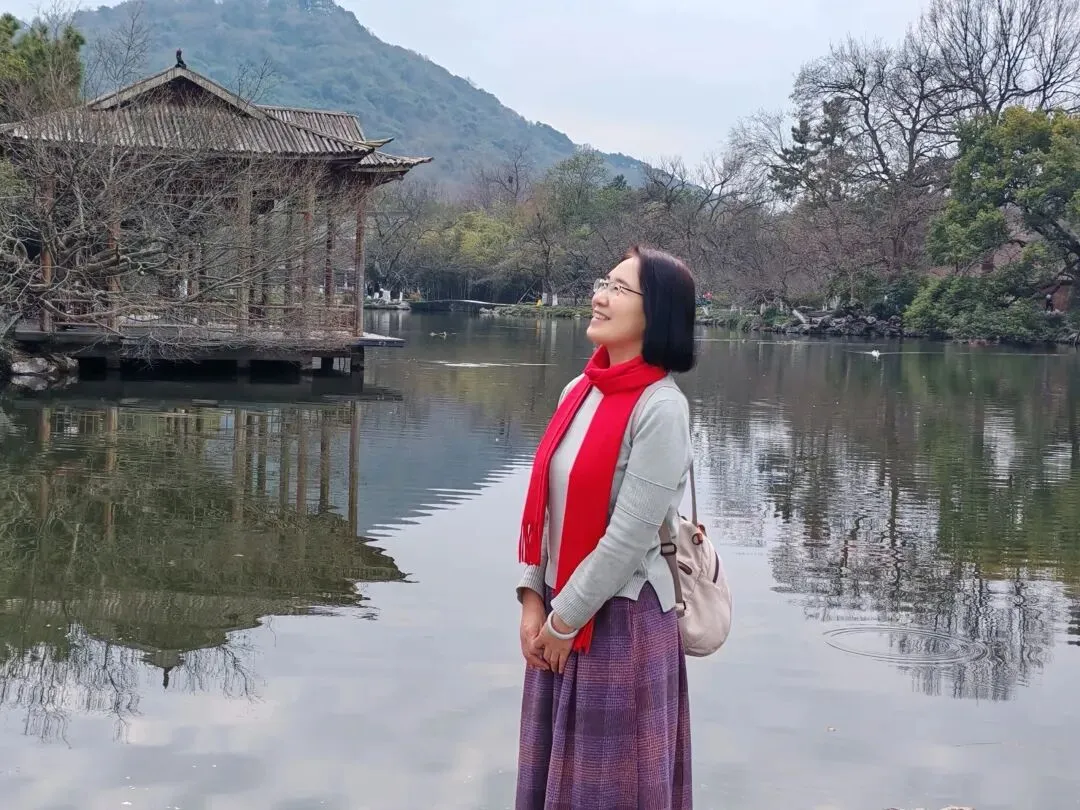 侧颜线条柔和舒展,搭配湖面波光与远处景致,不用刻意找角度,就能拍出温婉沉静的氛围感,把中年女性的从容韵味展现得淋漓尽致。