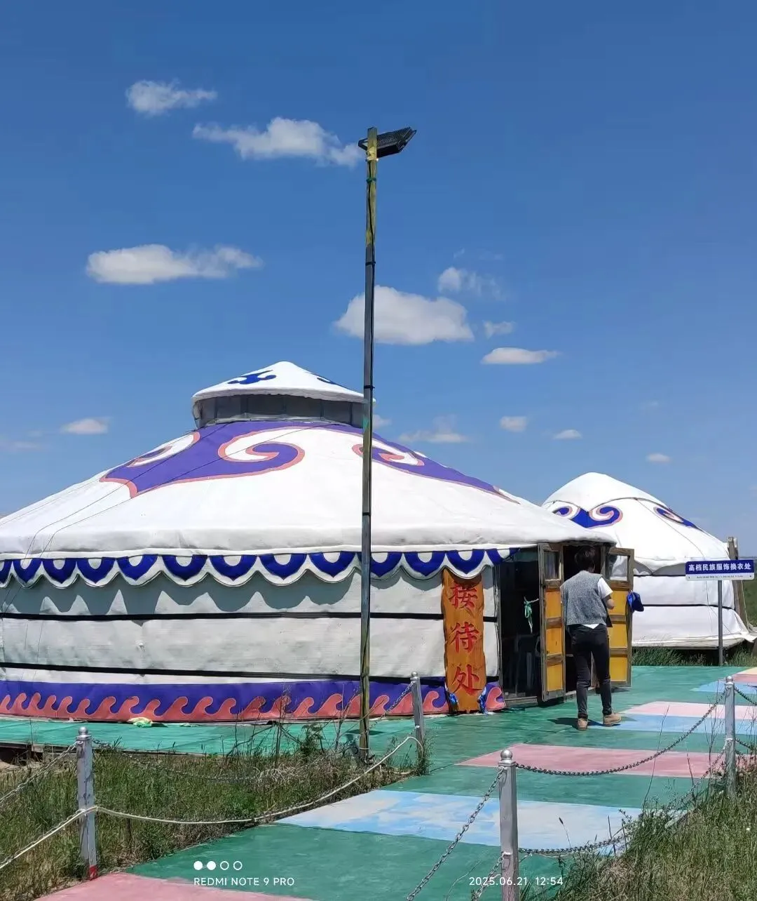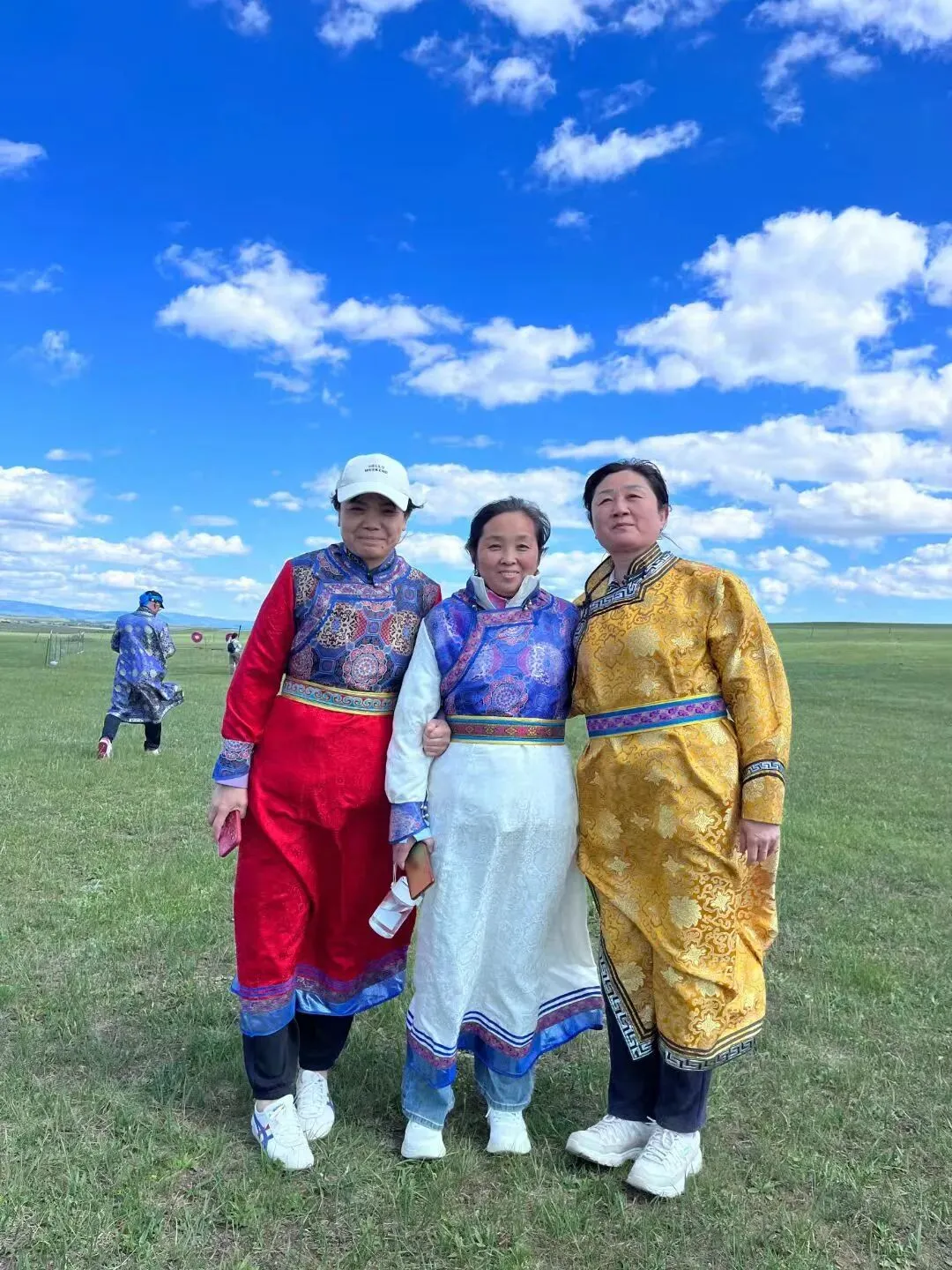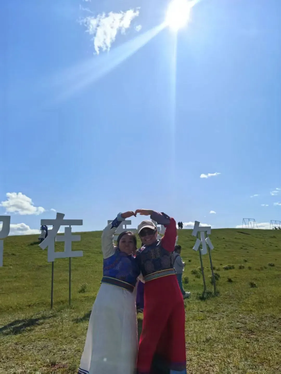 这次三个人跟团来回四天,玩得很开心。首先去的贡格尔大草原,每人租了一套草原牧民服装。穿上拍个照纪念下,咋感觉有点怪怪的。