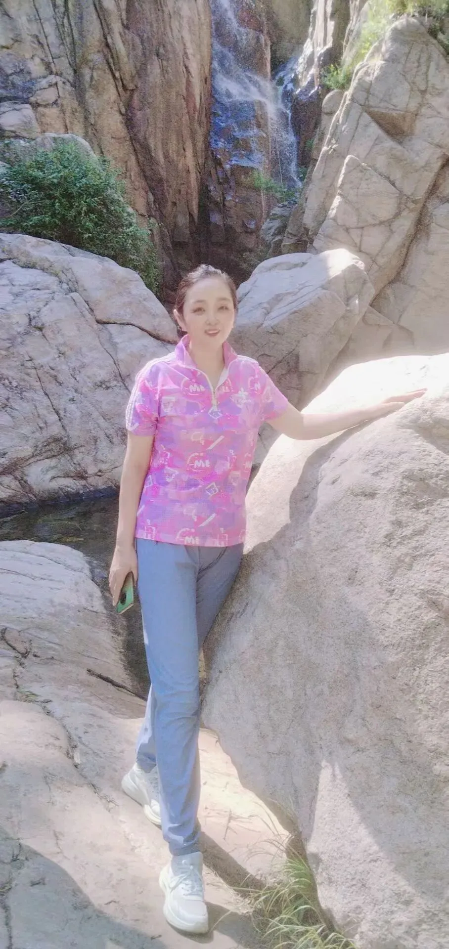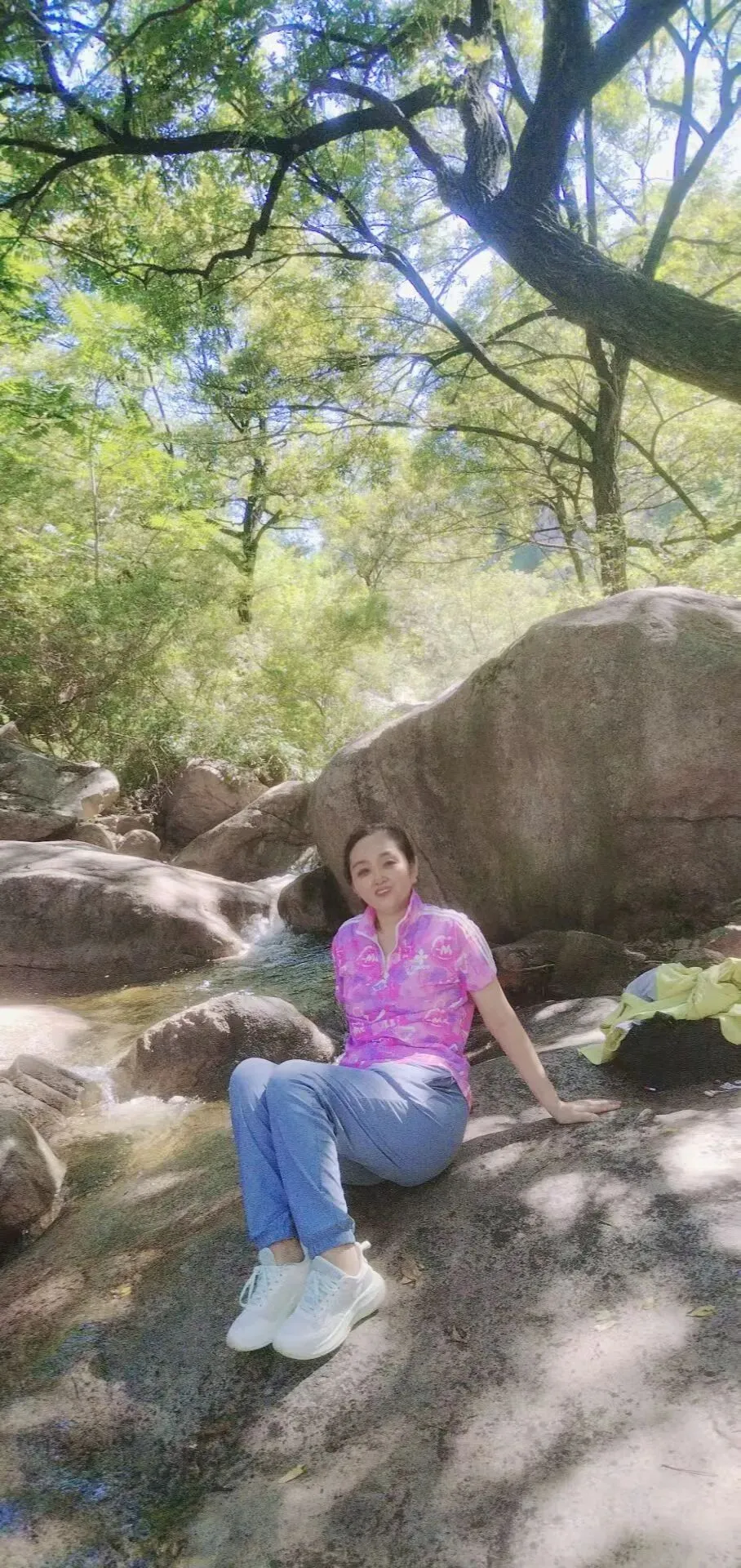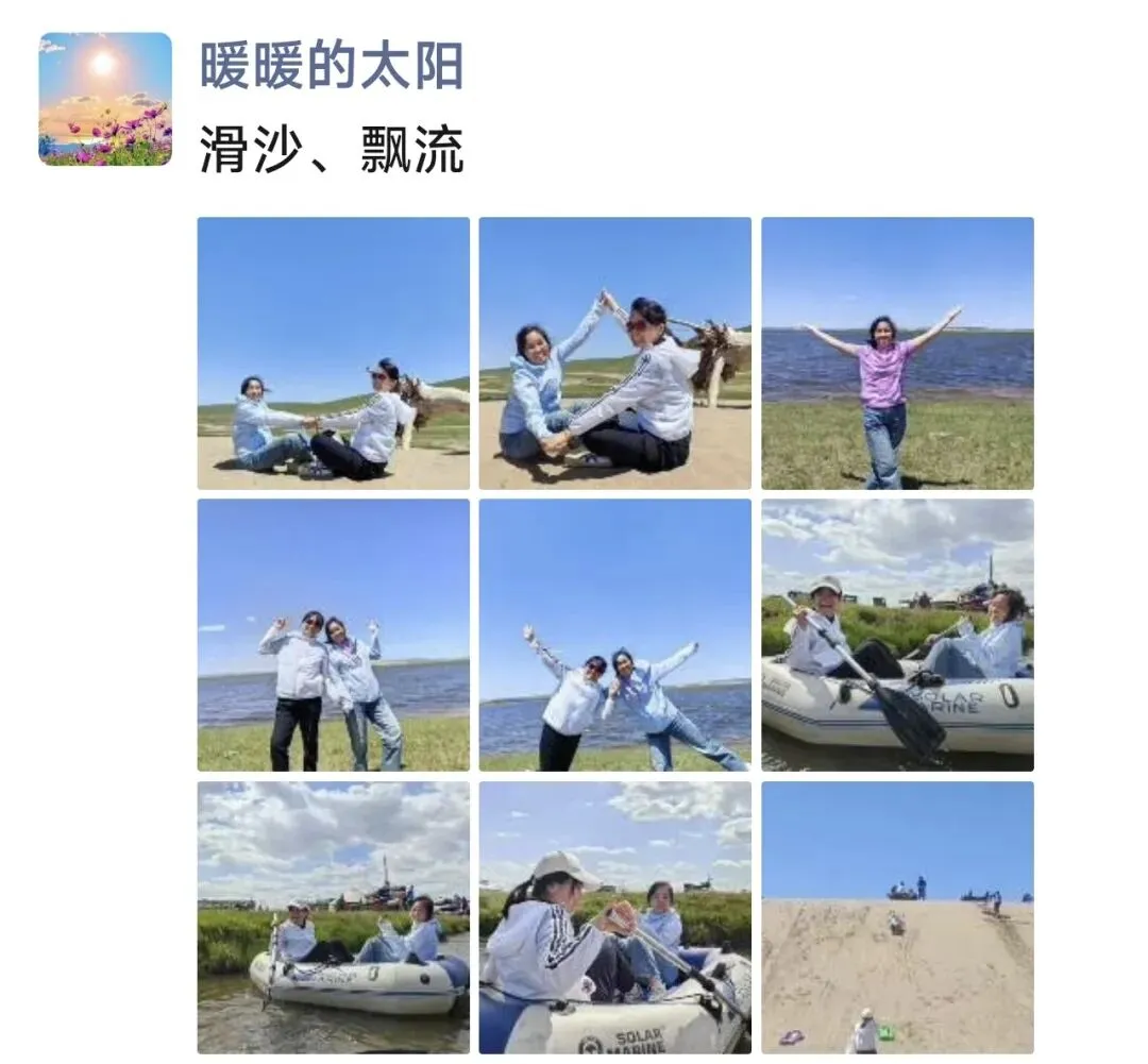 和对门赵姐一块去的,路上还遇上了男同事及他的同学。四个人结伴游玩,玩得很开心。