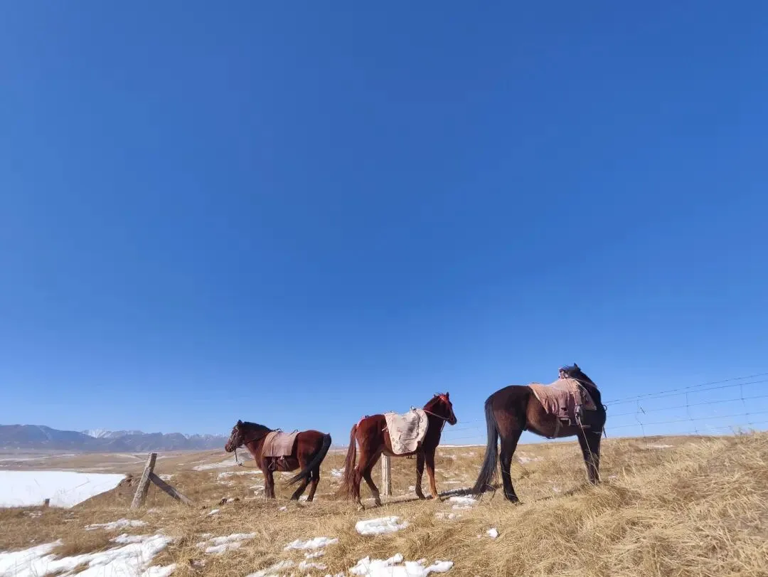 行至马场深处,我勒住缰绳让马缓缓走着,看着远处慢悠悠啃草的羊群和连绵起伏的雪山,忽然懂了那句“失我焉支山,使我嫁妇无颜色”里藏着的怅然。
