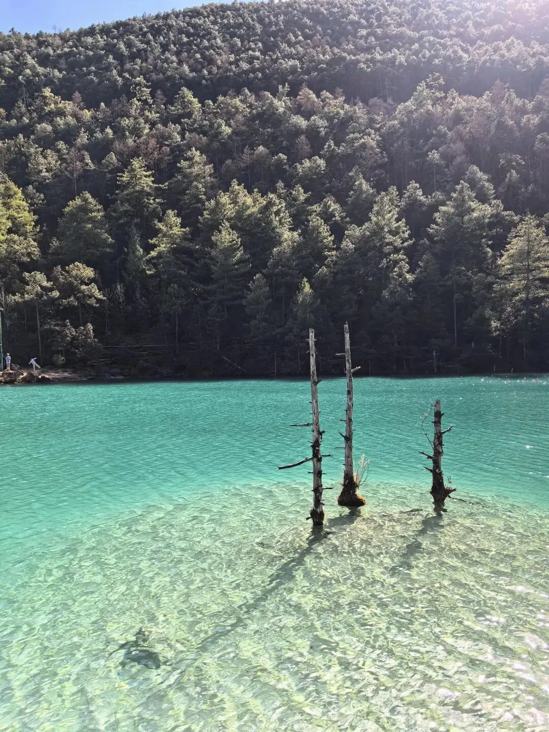 - 隐藏玩法:大部分人只在北岸欣赏玉液湖的蓝和蓝月湖的绿,其实南岸视角更开阔,雪山、森林、湖泊同框,拍出来的照片极具特色,时间充足的话一定要绕湖一周。