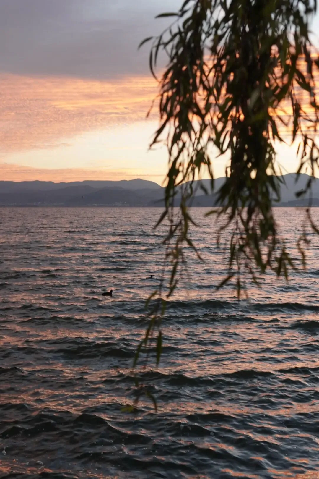 咖啡馆的饮品一般,但风景完全值回“门票”!坐在窗边发呆一下午,看着洱海和远处的苍山,超级放松~ 下山时刚好撞见粉色日落,天空被染成温柔的粉色,美到失语~ 晚上回古城吃七岛白族菜,排队的人超多但性价比超高,便宜大碗~ 幸运地和另一个独自旅行的女生拼桌,点了烤罗非鱼、水性杨花、薄荷炸排骨等四个热门菜,分量足到吃不完,味道也很在线~