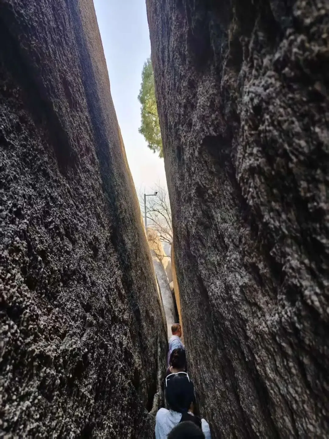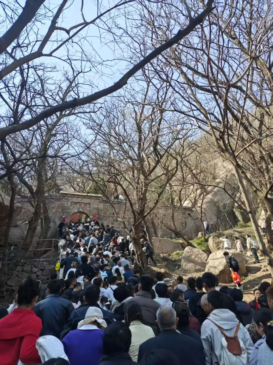 电话那头是一位年轻小伙:你家孩子找不到家长了,让我帮他给你打个电话。得知孩子还是在下边,我连忙拜托他让孩子千万别乱动,我马上过去领。小伙担心我逆行拥挤不安全,主动提出带着孩子往上走,把人送过来。我连连道谢,和老文立刻爬到显眼的石坡高处等候。