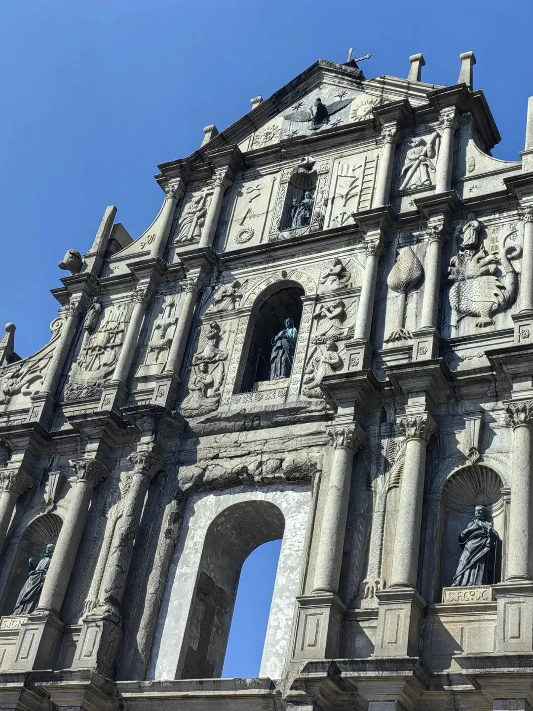 1.三大巴牌坊:大三巴牌坊(英语:Ruins of St.Paul's),是澳门标志性建筑之一,是圣保禄大教堂(又称“天主之母”教堂)正面前壁遗址,也是澳门最具代表性的建筑,位于中国澳门特别行政区花王堂区炮台山下。大三巴牌坊的前身圣保禄教堂,始建于1602年,直到1637年修建完成;后于1835年被大火焚毁,仅余下正面前壁、大部分地基及石阶,目前所见的大三巴牌坊就是教堂前壁的遗址;1990年至1995年间,澳门政府对教堂遗址进行了维修工程,并建成了一个天主教艺术博物馆,收藏各类画作、雕塑和礼仪饰物等展品。“三巴”是葡文“圣保禄”(São Paulo)的译音,本地人因教堂前壁形似中国传统牌坊,将之称为“大三巴牌坊”。大三巴牌坊的建筑设计采用意大利巴洛克风格,而其中雕刻又具有东方特色。