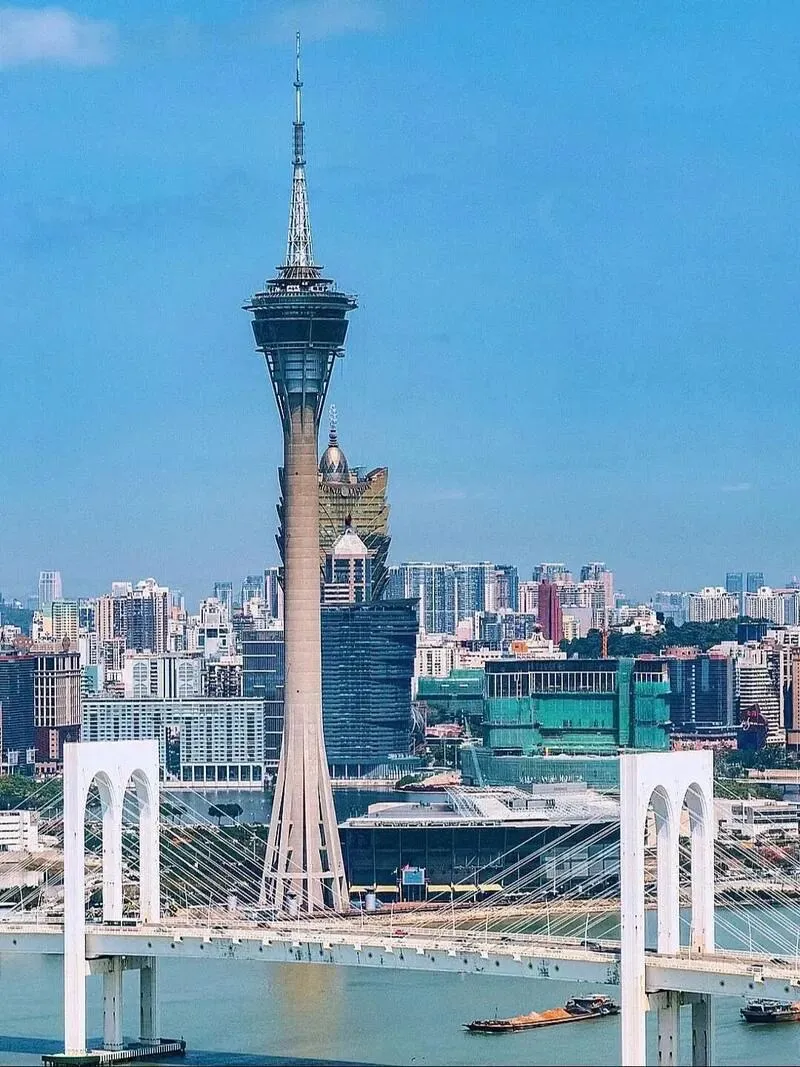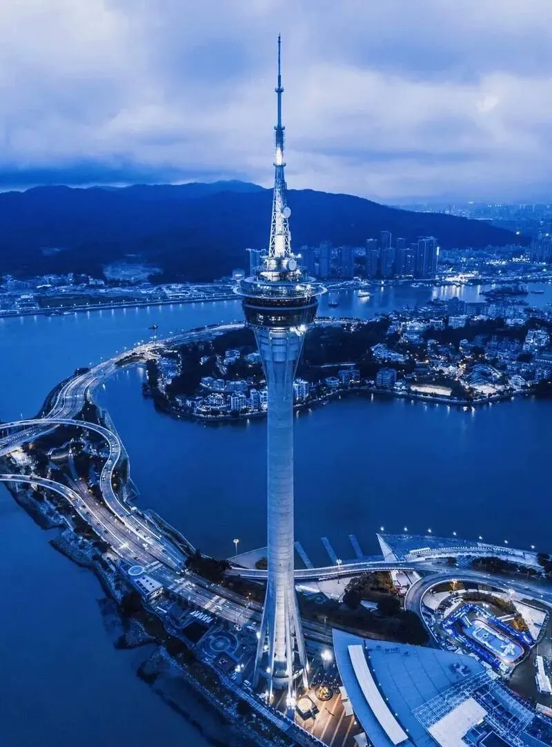 5.旅游塔:澳门旅游塔(葡文:Torre de Macau,英文:Macau Tower)位于中华人民共和国澳门特别行政区南湾新填海区,占地13363平方米,总高度338米,是全球第十高的独立式观光塔及世界高塔联盟成员。该塔由何鸿燊投资建设,1998年动工,2001年12月19日作为澳门回归祖国两周年献礼正式开放,主观光层位于223米高处,设有360度玻璃幕墙观景平台。