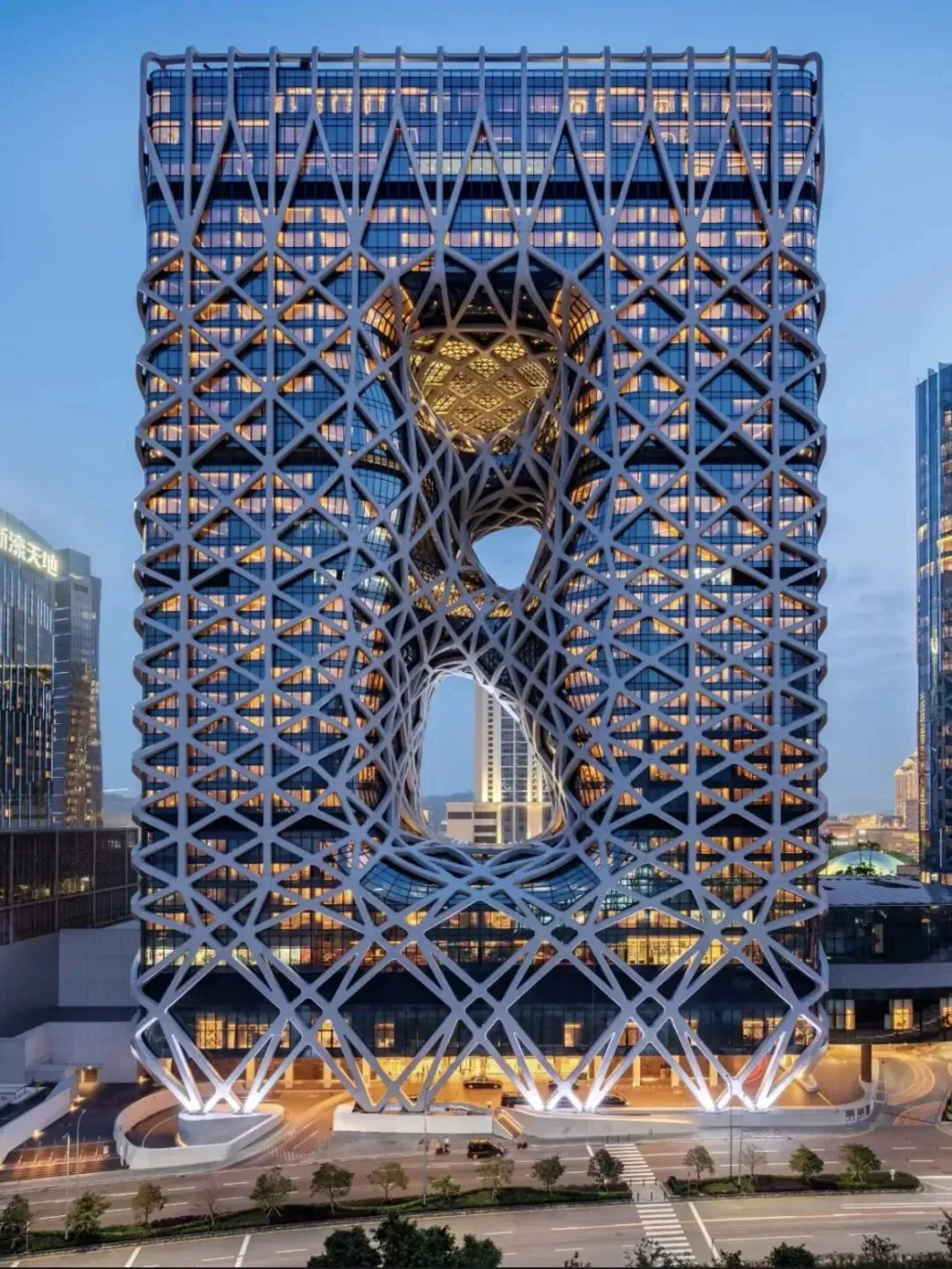 6.新濠天地:新濠天地(The City of Dreams)是位于澳门特别行政区路凼填海区离岛路凼连贯公路的大型综合度假项目,毗邻澳门科技大学,第一期于2009年6月1日开幕,集娱乐设施、酒店、餐饮及购物商场于一体。项目包含300余间由澳大利亚设计公司打造的豪华酒店客房,并设有摇滚主题的HARDROCK酒店。其圆顶形综合剧院推出多媒体视听节目“龙腾”,通过10分钟4D体感效果演绎龙王护送龙珠的奇幻故事。度假区内设有约20家餐饮场所,覆盖休闲轻食至高端料理,其中尚雅坊以经典肉扒和创意海鲜为主打。