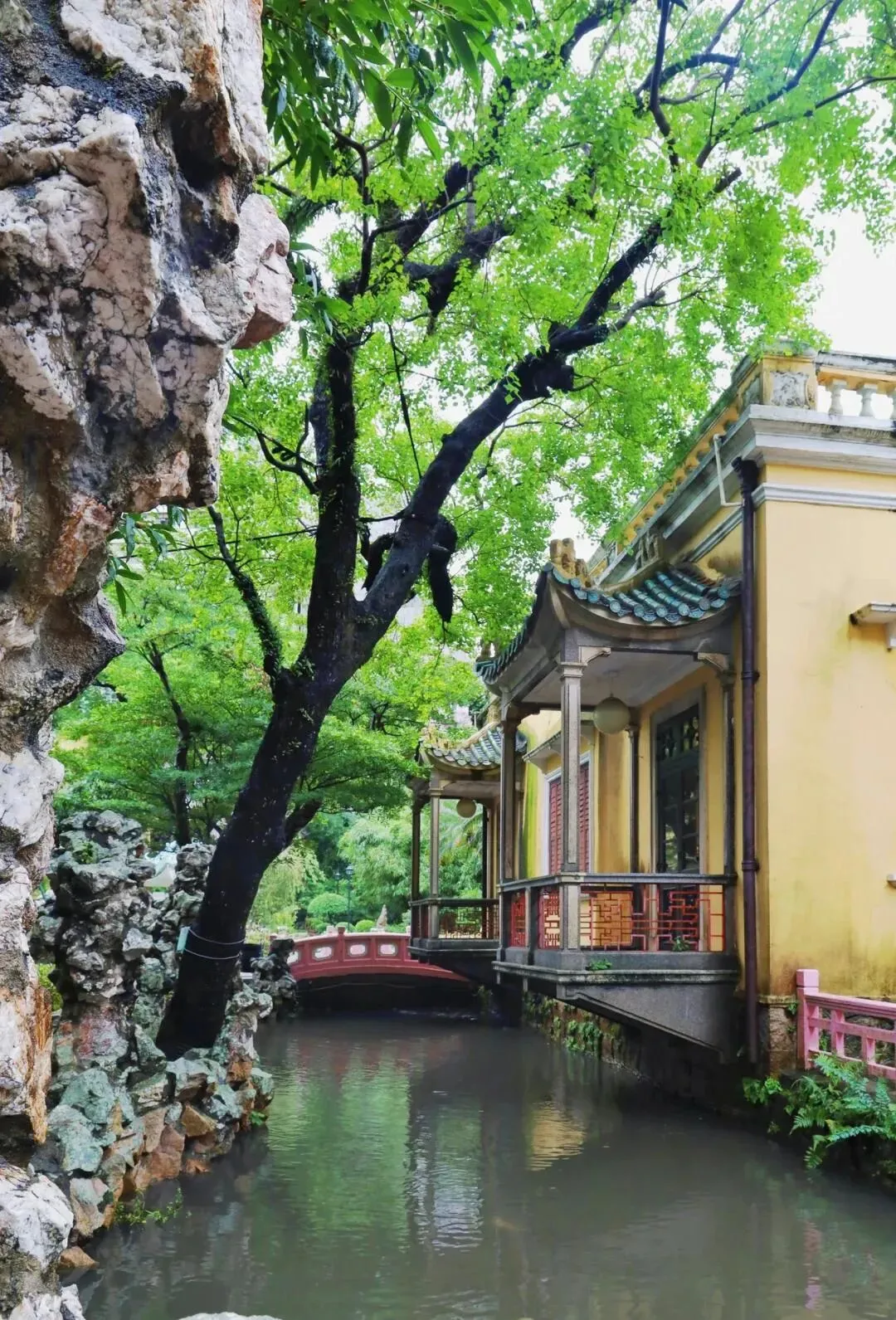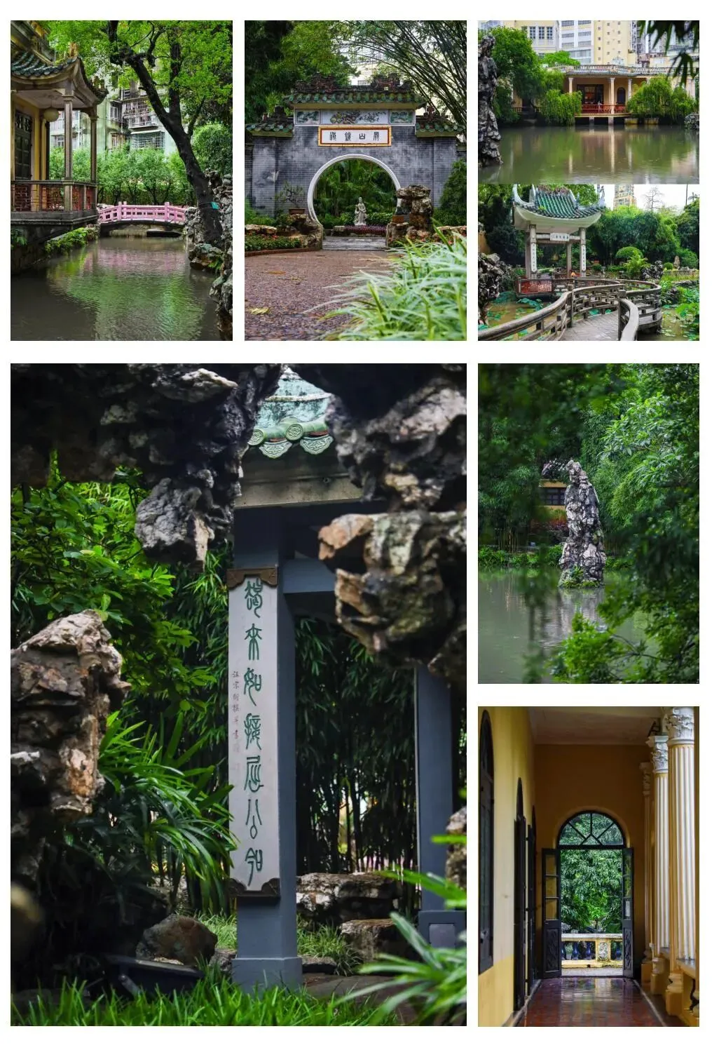 10.卢廉若公园:卢廉若公园(外文名:Jardim Lou Lim Iok),又称卢园、卢九花园,是位于澳门罗利老马路10号的公园,占地面积约11846平方米,免费开放。该园原为19世纪富商卢华绍家族私园,始建于1904年,由卢廉若设计建造,1973年澳门政府收购后于1974年开放。园内融合苏州园林亭台楼阁与南欧建筑元素,春草堂以哥特式廊柱和米黄色外墙为特色,假山布局效仿苏州狮子林。1912年孙中山曾在此会见中葡知名人士。2023年与苏州狮子林缔结“姊妹园”,推动园林文化交流。