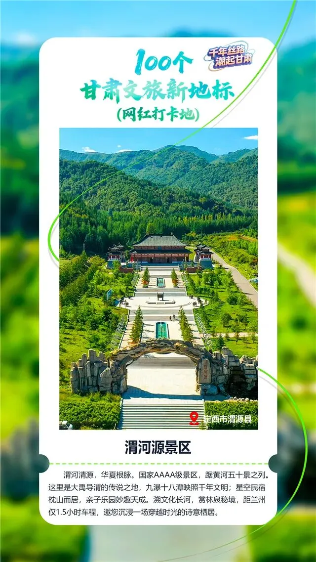 从文明源点的深沉叩问,到林泉飞瀑的身心涤荡,再到特色宿集的惬意栖居,渭河源景区完整构建了“文化溯源+生态观光+亲子休闲+度假康养”的复合体验。它不再是遥远的风景,而是触手可及的诗与远方——距兰州仅1.5小时车程,便可从都市喧嚣切换至文明与自然的双重静谧。 走进渭河源,既是触摸中华民族奔腾不息的初代脉搏,也是在山水清音中,寻回内心的宁静与丰盈,赴一场源头的约定。 (来源:甘肃省文化和旅游厅)