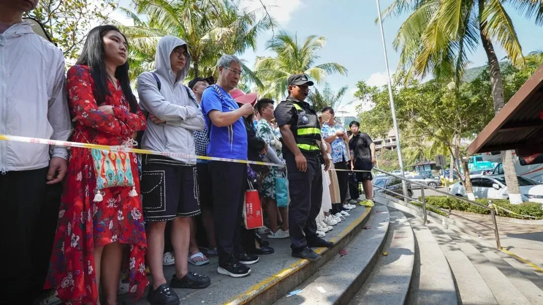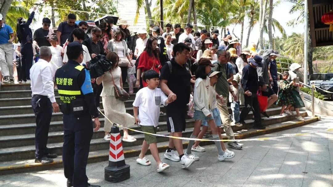 在陵水·过潮年 | 景区筑起爱心线 引导游客有序排队入园游玩