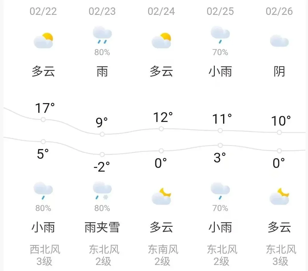 登封市气象台预报,今天,多云,西北风3-4级转2-3级,最低气温:5~6度,最高气温:16~17度。