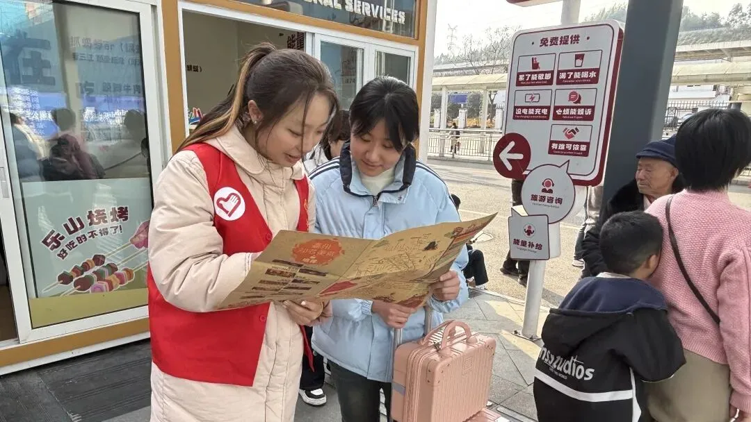 2026年春节期间,乐山市市中区以“暖冬迎春 情满嘉州”为主题,开展为期12天的旅游志愿服务专项行动。共青团乐山市市中区委通过招募“嘉小青”志愿者、开展专业技能培训、健全保障机制等一系列举措,为来自五湖四海的游客提供了优质、专业、温暖的志愿服务,获得广泛好评。
