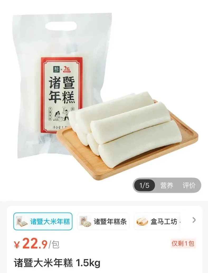• 推荐店铺:奥乐齐,叮咚买菜,盒马下单都可以买到,哪家便宜就买哪家!价格:¥5~10元/包(500g)。推荐理由:不同于北方年糕,更适合炖煮,上海人炒菜、煮汤的必备,懒人直接整根丢进空气炸锅,烤完外酥里嫩!真空包装可常温保存一年都没问题,适合旅途中携带。