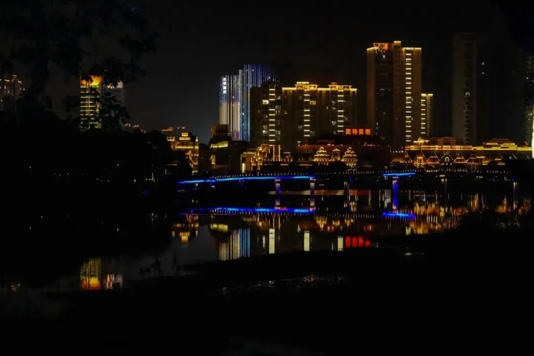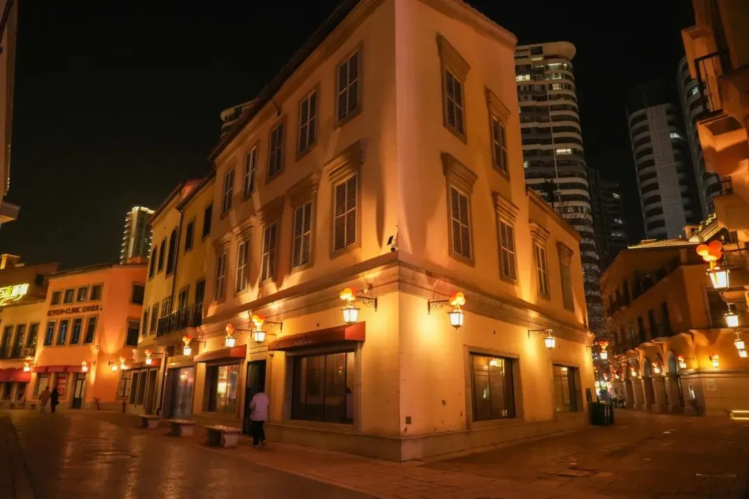 民国风格洋行与四合院,夜间灯光秀重现“湘西大码头”盛景。