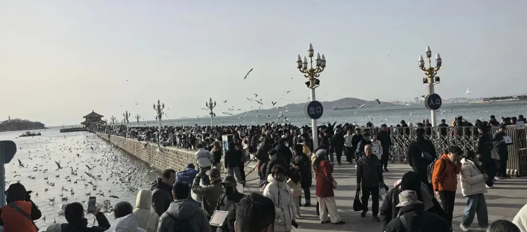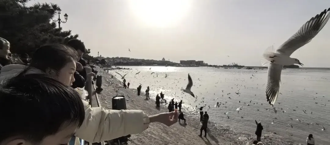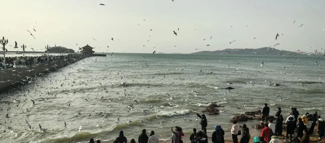 成千上万只海鸥在海面盘旋,游人的笑声、孩子的尖叫、海鸥的鸣叫交织在一起——热闹得像一场盛大的派对。