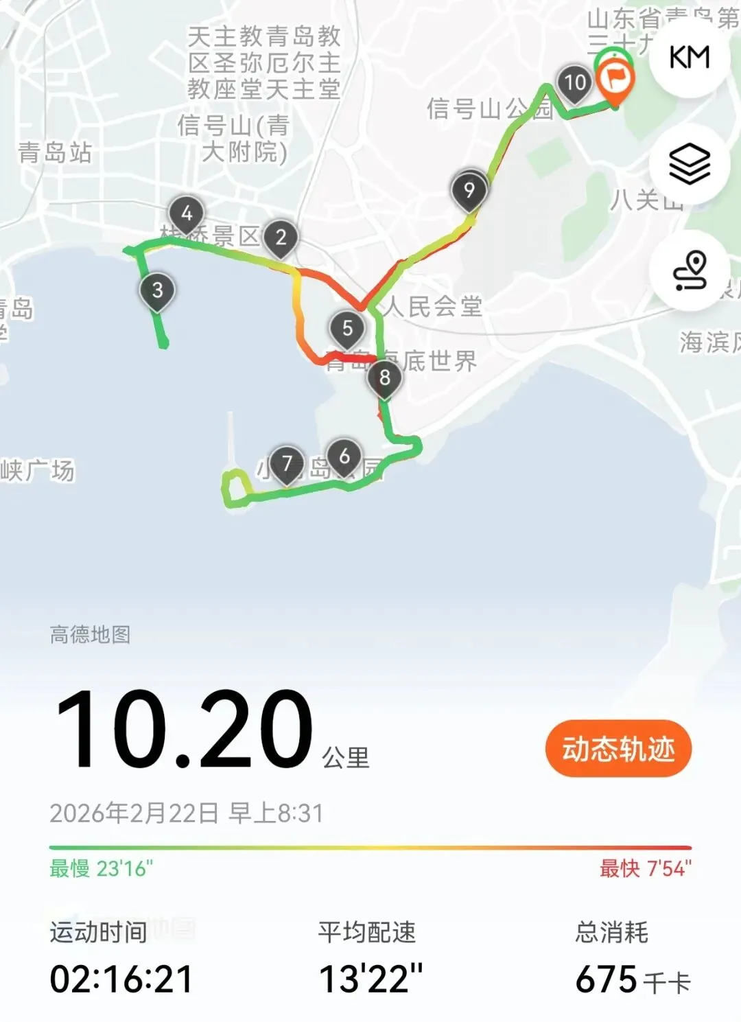 从栈桥到小青岛,再慢慢走回家,手机显示:10.2公里。(上次运动还是海大十公里)。