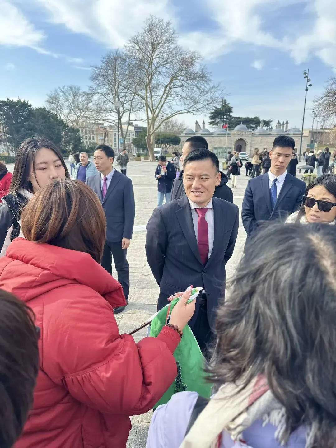 中国驻伊斯坦布尔总领馆尚健 副总领事热情地与每一位游客见面握手,表达着对大家的欢迎与祝福。