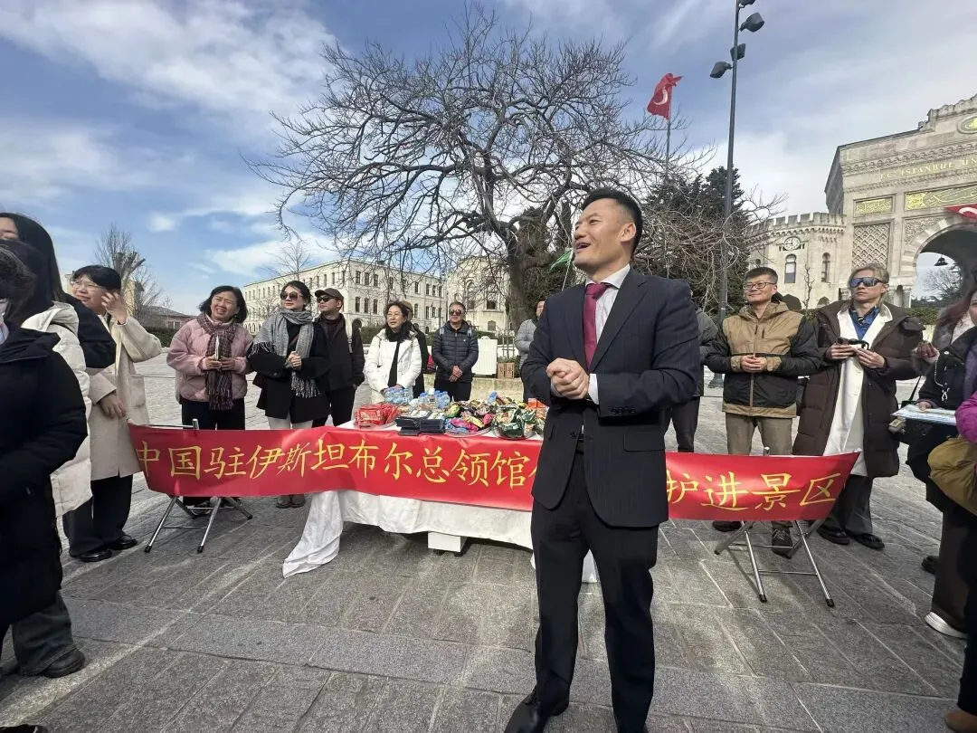 初到异国他乡,游客们难免心怀忐忑。然而,当他们抵达巴耶济德广场,看到总领馆工作人员亲切的笑容时,所有的不安都烟消云散。总领馆为领航国际旅游集团组织的游客们举行了热情的欢迎仪式,并精心组织了领保宣传活动。