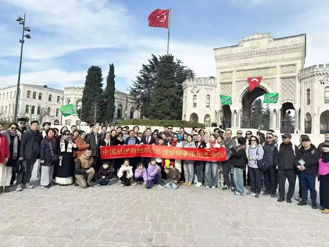 2026年2月21日,农历正月初五,当国内还沉浸在春节的热闹余韵中时,由领航国际旅游集团组织的3个旅行团、近百位游客已踏上了土耳其这片充满神秘色彩的土地,齐聚在历史悠久的巴耶济德广场,开启了一场难忘的异国之旅。而这一天,也因中国驻伊斯坦布尔总领馆的暖心关怀,成为了大家心中熠熠生辉的珍贵记忆。