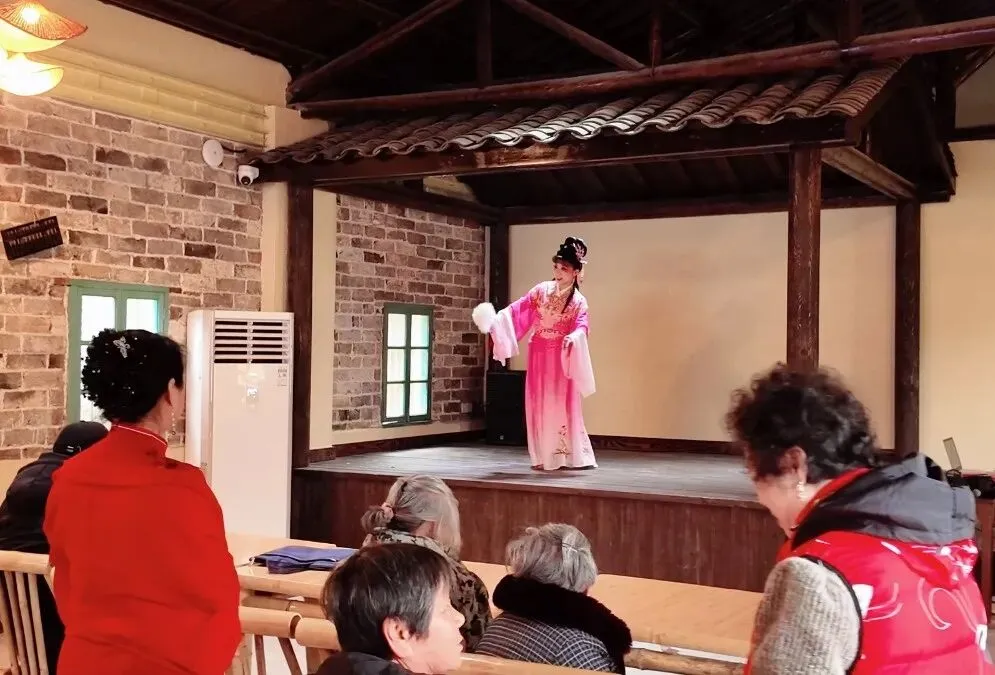 古村的年味,从味觉开始。龙潭肖大队屋餐厅内座无虚席,游客们一边品尝地道农家年味,一边欣赏戏曲表演。台上唱腔婉转,台下掌声阵阵,传统戏曲与古村老屋相得益彰,让人仿佛穿越回儿时的春节。