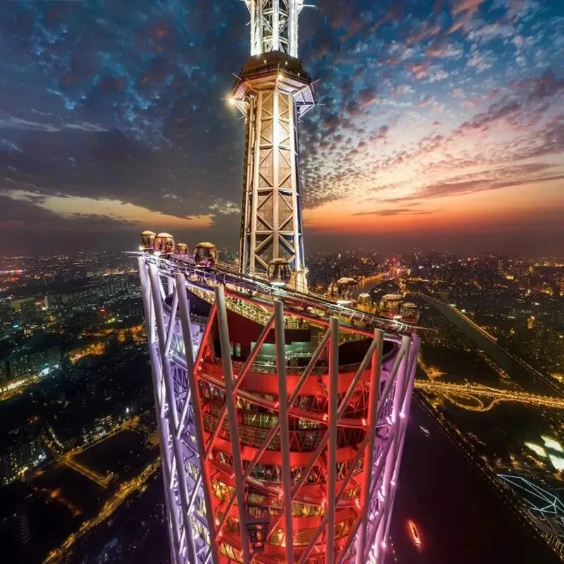 包含433米白云星空观光大厅、450米户外观景平台以及460米摩天轮。广州塔摩天轮位于460米高空,是全球最高的摩天轮之一。乘坐其中,透明玻璃球仓让你360度无死角欣赏城市风光。随着摩天轮缓缓转动,整个广州在你脚下缓缓移动,无论是白天欣赏城市繁华,还是夜晚感受璀璨灯火,都格外浪漫。这绝对是情侣约会、家庭出游的必选项目!
