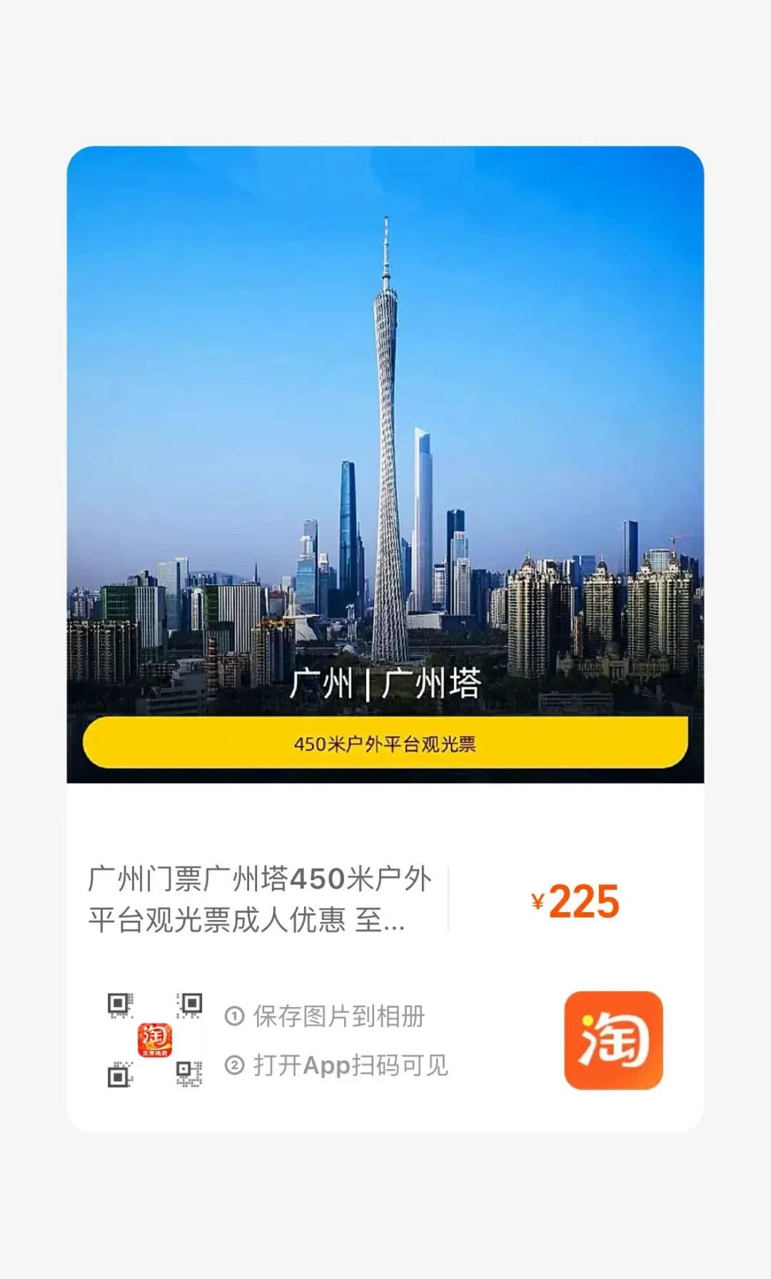 【淘宝】https://e.tb.cn/h.7BblZcFnM3abfLm?tk=0BVIULpKPt5 MF168 「广州门票广州塔450米户外平台观光票成人优惠 至少提前一天预订」