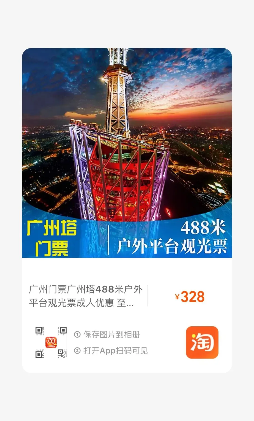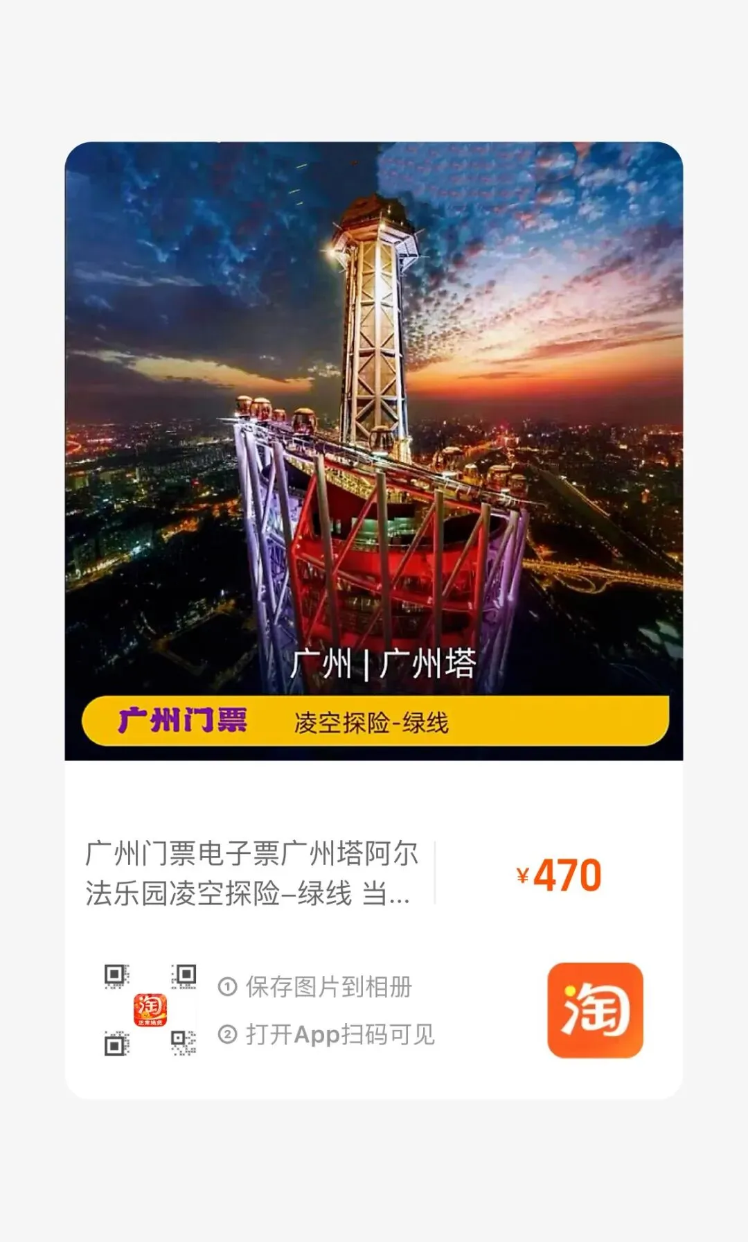 【淘宝】https://e.tb.cn/h.7BbKhReWZl5dK59?tk=HUYQULpvurE HU006 「广州门票广州塔488米户外平台观光票成人优惠 至少提前一天预订」