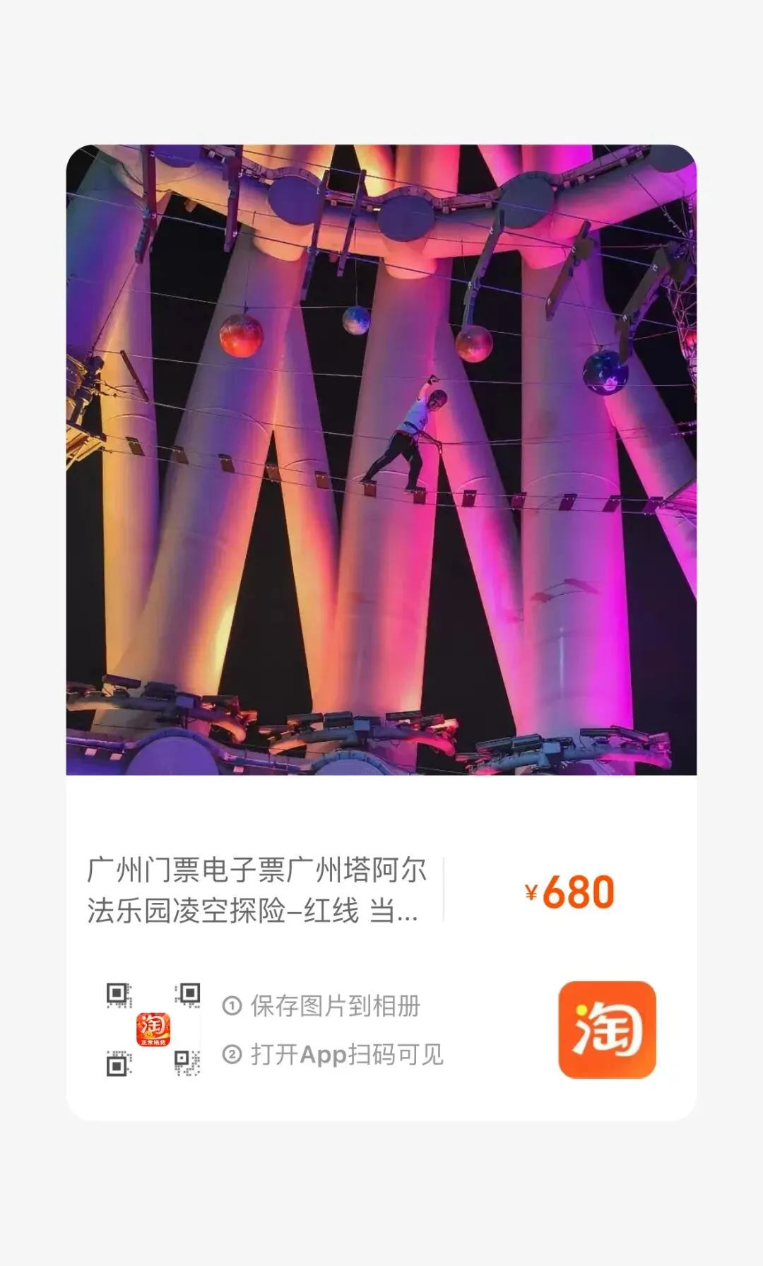 【淘宝】https://e.tb.cn/h.7BoxGLVMT62GqiA?tk=miqSULK3epm MF937 「广州门票电子票广州塔阿尔法乐园凌空探险-红线 当天可订即订即用」