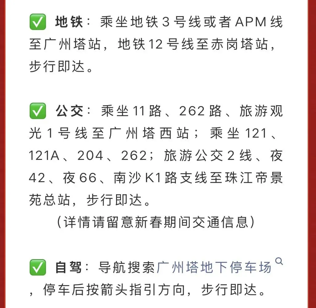 新春佳节,带上家人朋友,登上广州塔,在云端迎接红火一年。让这份详尽的攻略成为你探索广州塔的最佳伙伴,愿你在这座城市的最高处,留下最美好的回忆!