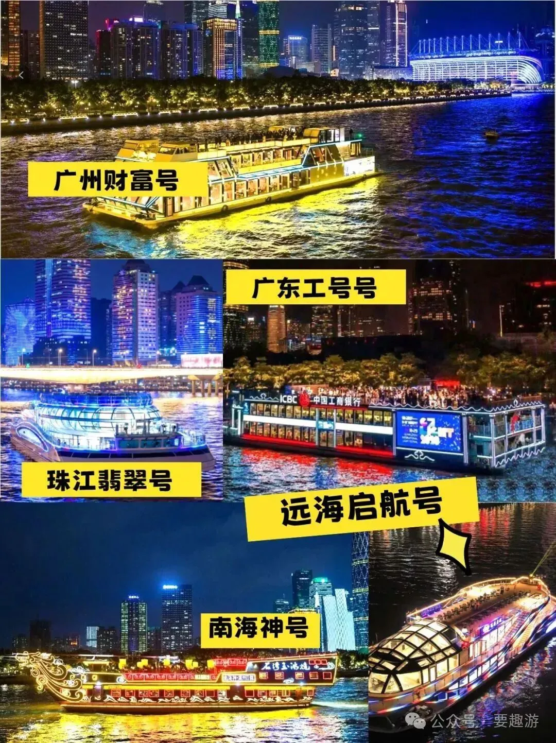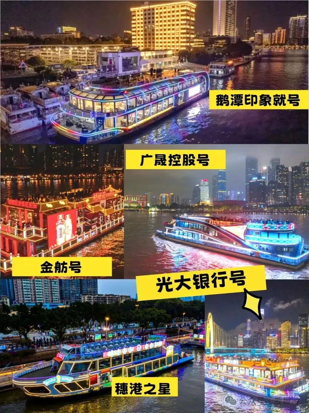 晚上:乘坐珠江夜游船,从水上视角欣赏璀璨夜景;或在花城广场欣赏广州塔灯光秀