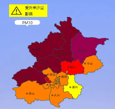 据了解,受外来沙尘传输影响,截至21日16时,北京全市实时空气质量指数为258,已达重度污染水平,首要污染物为PM10。延庆、怀柔、昌平、门头沟等西北部地区已达严重污染。