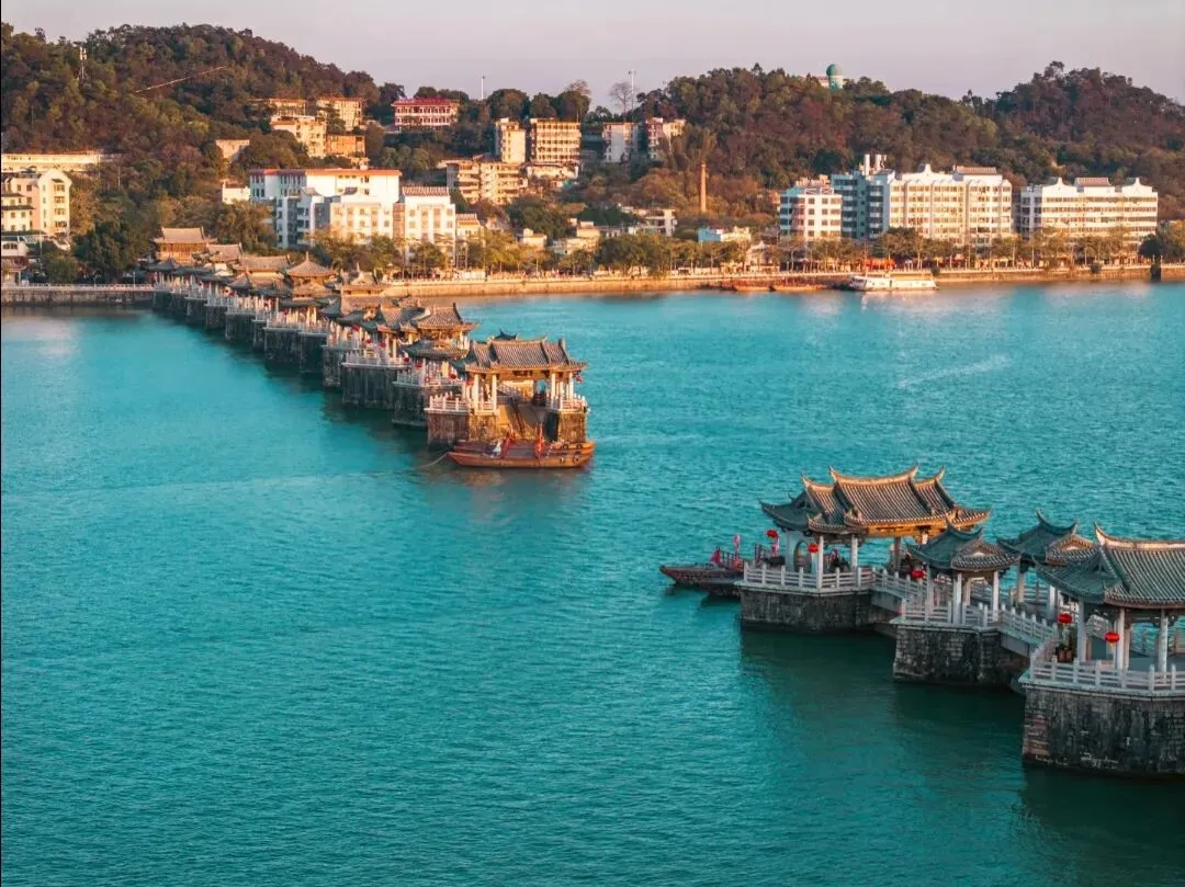 他们会在桥上数那些形态各异的亭台楼阁,会在浮船段站很久,看韩江水缓缓流过。