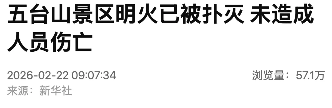 点击上方蓝字关注安全员安全员——安全总监、安全主管、安全员聚集地,安全生产、警钟长鸣。关注安全员公众号,与5万安全人共同学习、交流。👇👇👇点击下方名片关注“安全员”,我们为您提供有价值的工程阅读 五台山景区明火已被扑灭,未造成人员伤亡