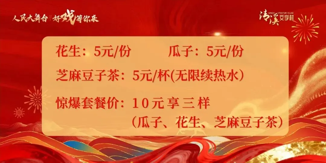 📢戏入耳,茶暖心,瓜子花生伴闲情!清溪景区戏曲正响,年味儿正浓,广邀五湖四海的兄弟姐妹一起来赏大戏,品美食!✨