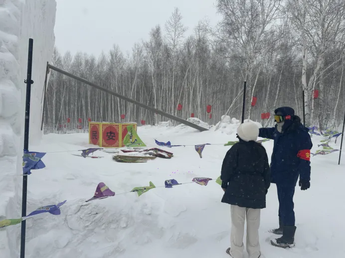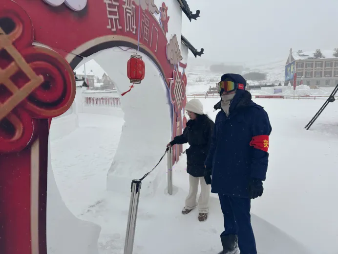 三是压实主体责任,抓好安全隐患排查。深入景区聚焦冰雪雕塑结构稳定性、现场安全管理、警示标识设置等关键环节,进行细致检查。同时,督促景区严格落实安全主体责任,安排安全员加密巡查频次,做到不留死角、不漏隐患。遇气温回升、大风等天气,果断采取限流、缩短营业时间、临时闭园等措施,确保不出现安全隐患。