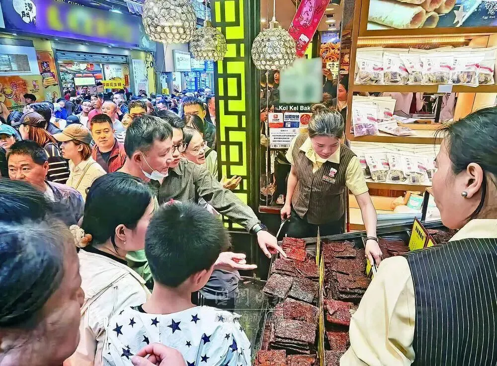 持续旺盛的客流,为澳门社区经济注入强劲动力,直接带动了本地商户的生意增长。中区各大手信店、小吃店、商铺门前客流不断,不少店铺安排工作人员沿街宣传引流,游客试食、选购商品的场景随处可见,消费市场一派火热。