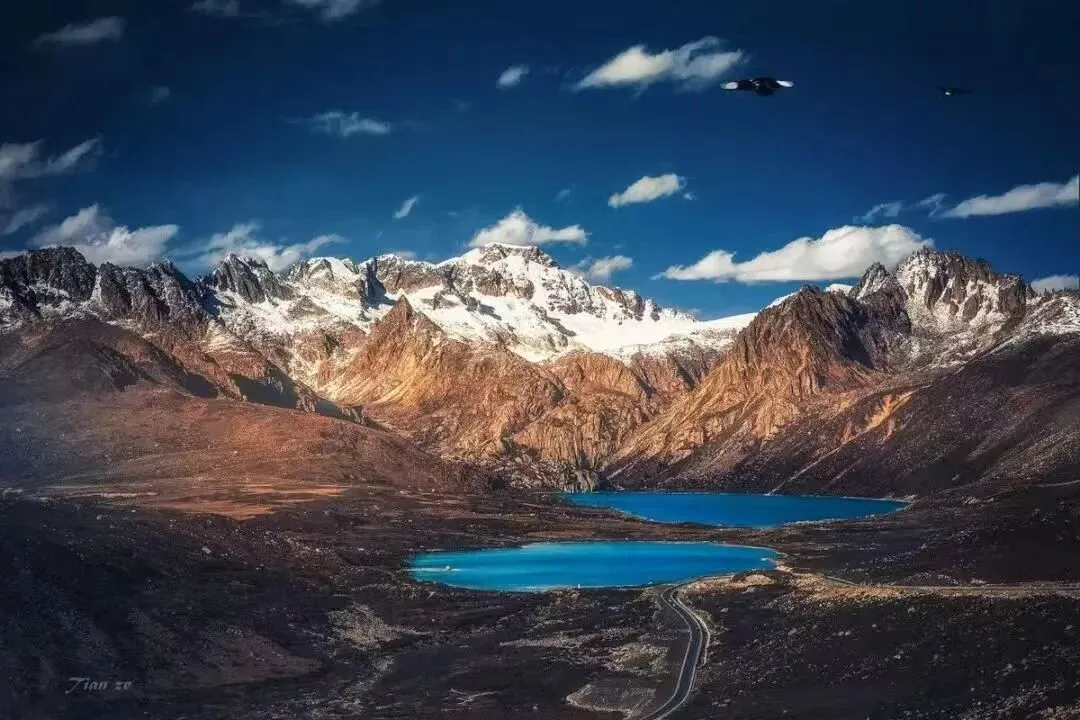 赶早从香格里拉镇出发,经稻城,过海子山自然保护区,在理塘大门下拍完集体照后继续前行。过理塘后路途非常好走,一路柏油路面,一边欣赏着毛垭草原风光,一边聆听着车内的高原音符,车子很快就到了海子山垭口(海拔4685米),拐个弯就看见了闻名遐迩的姊妹湖——从天堂掉落的宝石。下午一点左右到达巴塘,在巴塘午餐后,过金沙江大桥(川藏交界),我们就正式进入西藏了,大家不要忘记下车拍照留念哦!翻越宗拉山(海拔4150米),到达芒康。