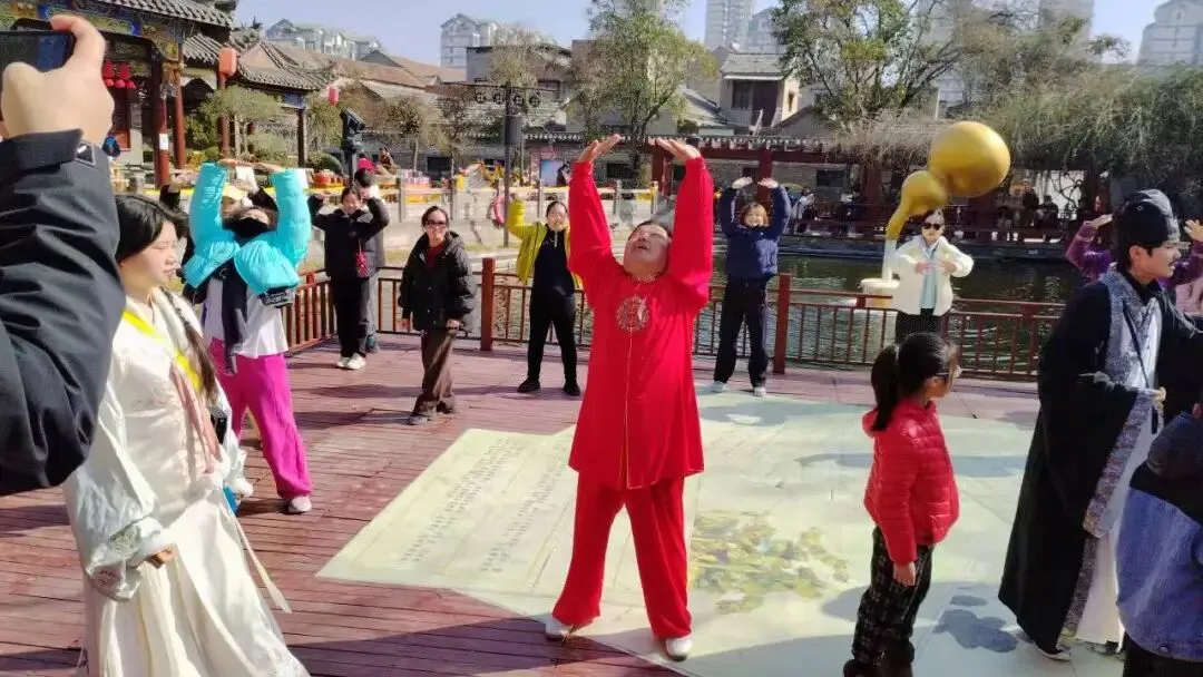 作为五禽戏的发源地,亳州始终致力于五禽戏的传承与推广。此次活动选址华祖庵景区,这里既是祭祀神医华佗的场所,也是展示五禽戏文化的重要阵地。活动期间,每天上午和下午,社会体育指导员们身着统一服装,凝神聚力、舒展身姿,依次演绎虎、鹿、熊、猿、鸟五戏,动作刚柔并济、形神兼备,完美展现了五禽戏的古朴韵味与养生精髓,吸引了大批游客驻足观赏、拍照留念。