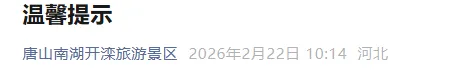 2月22日,唐山南湖·开滦旅游景区发布温馨提示,凡是以“内部优惠票、快速通道、预留名额、退款理赔、中奖福利”等为由,诱导您私下转账的行为,均为诈骗👇
