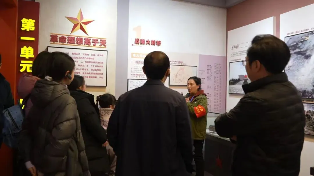 在红军长征陈列馆,节日氛围与历史厚重感交融。馆内讲解员坚守岗位,用生动的语言讲述红军长征途经此地的峥嵘岁月。展厅内,不少家长携带子女驻足参观,耐心地为子女讲解长征的艰难与红军战士的英勇无畏,让红色基因代代相传。