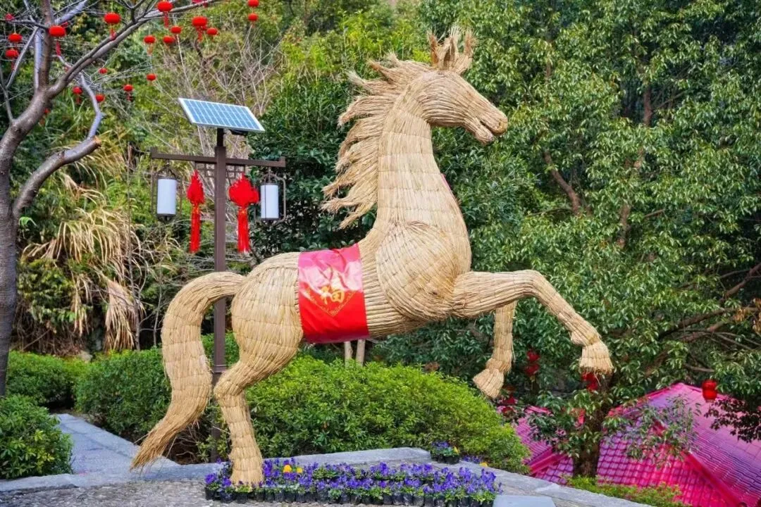 红灯摇曳,龙影翩翩,古朴草龙、祥瑞福马与游人笑颜相融,绘就碧龙潭独有的新春盛景。游客们在手工体验中感受民俗魅力,在寻龙打卡中收获新春福气。