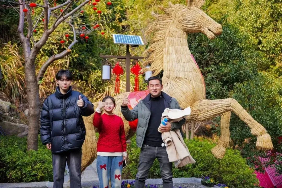 景区广场之上,巨型草龙昂首舒展,福马造型雄健生动。非遗匠人现场教学扎制草龙,金黄稻草在指尖缠绕、捆扎、塑形,条条小龙栩栩如生。亲子家庭围坐体验,指尖流转传统手艺,笑意写满眉眼。“第一次带着孩子亲手扎草龙,既有趣又有年味,孩子开心得不得了!”带着家人游玩的王女士捧着成品草龙,笑意盈盈地说。