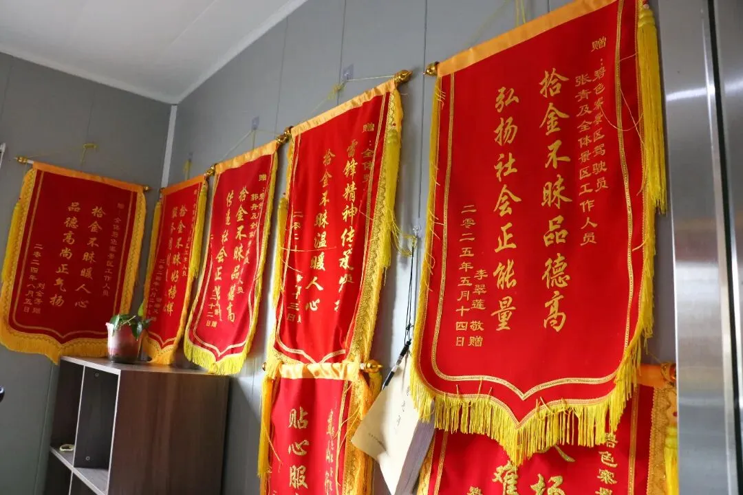 在蒙自市碧色寨滇越铁路历史文化公园游客中心失物招领处,有着别样风景——小小的房间挂满了锦旗,意见簿上写满了游客感谢的话语。这一面墙的“锦旗红”背后,是景区工作人员深耕文明旅游建设、服务理念深入人心的生动体现。