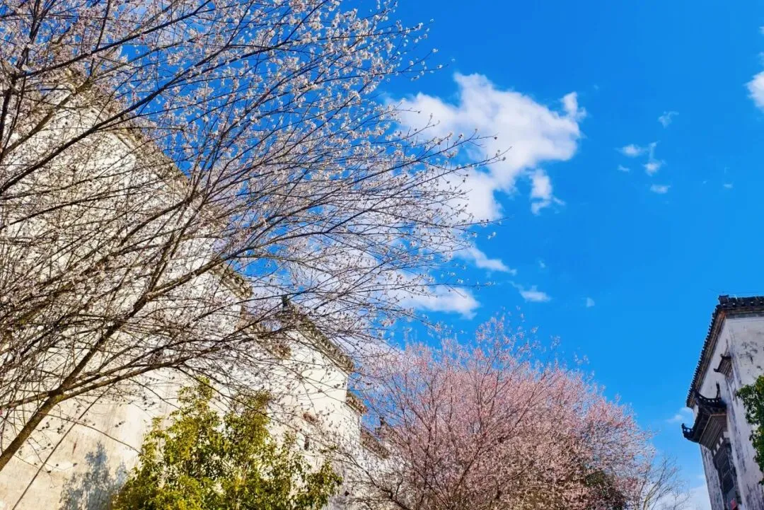 距离歙县县城不远的练江牧场,这里的百亩梅花正值最佳观赏期,绯红、雪白、淡粉的花朵簇拥枝头,在蓝天白云下交织成一片绚烂的花海。与卖花渔村山岭间的梅树不同,牧场的梅林更显开阔平整。 游玩贴士: 这里视野开阔,适合家庭出游,带上野餐垫,享受悠闲时光! 想看古建?许村被誉为“徽派建筑博物馆”,目前仍保存有元明清时期的古建筑100余幢,其中16处被列为全国重点文物保护单位。春节期间,许村不仅有静态的古建,更有动态的年俗。不仅可以逛逛改造升级后的古村业态,还能体验到当地特色的非遗民俗。 游玩贴士:如果您是古建摄影爱好者或对徽州文化有深度需求的游客,这里绝对能逛上一整天。 雄村是一座以教育文化闻名的古村,而竹山书院就是它的灵魂所在。这座建于清乾隆年间的书院,是徽商“亦贾亦儒”的最佳见证。书院前的桃花坝、桂花厅与巍峨的文昌阁(八角亭)矗立在新安江畔,颇为壮观 。 游玩贴士:游览完书院,还可以沿着江边走走,感受新安江的静谧春水,最是养心静气。 尊敬的游客朋友们: