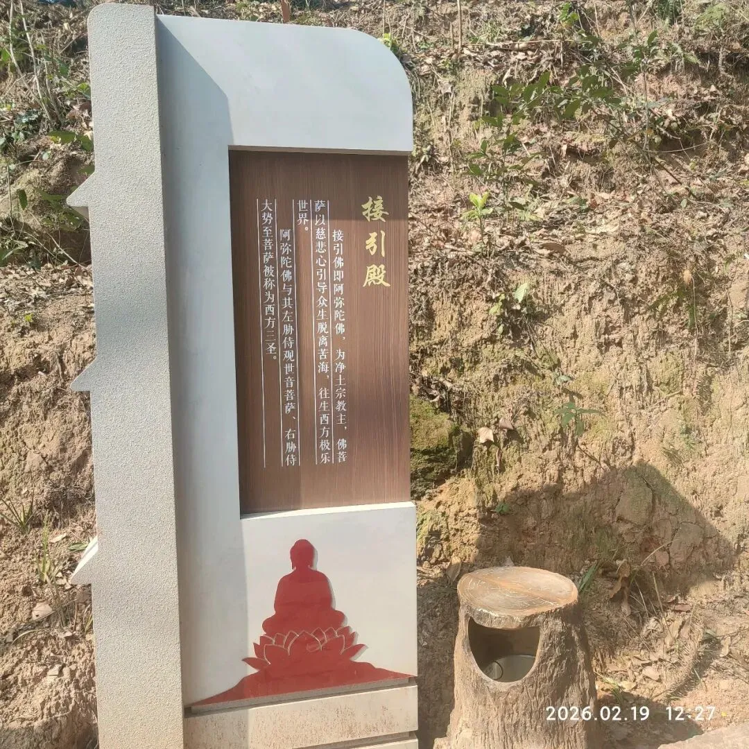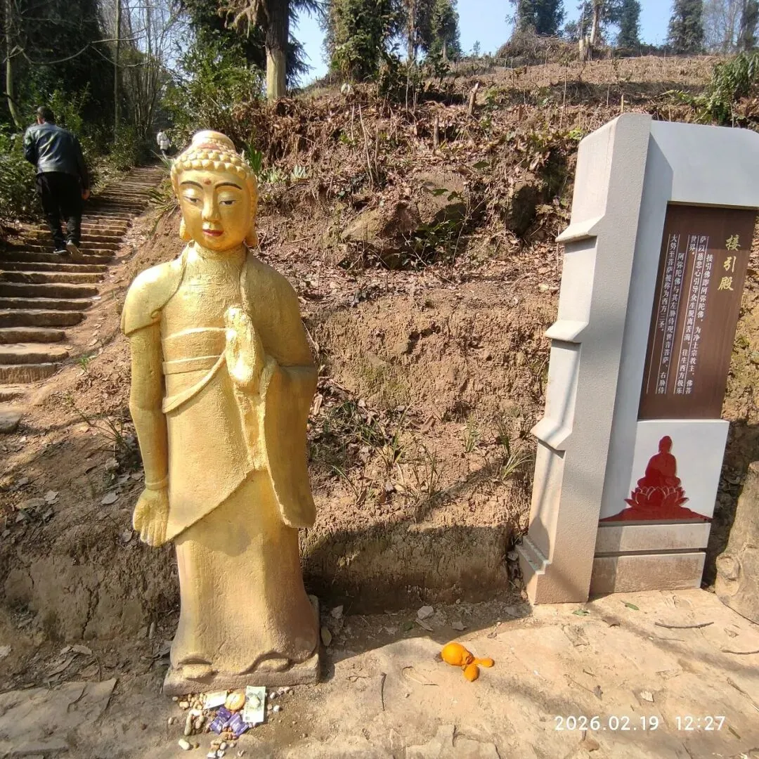 接引佛即阿弥陀佛,为净土宗教主,佛菩萨以慈悲心接引众生脱离苦海,往生西方极乐世界。阿弥陀佛与左胁侍观世音菩萨、右胁侍大势至菩萨,合称“西方三圣”。